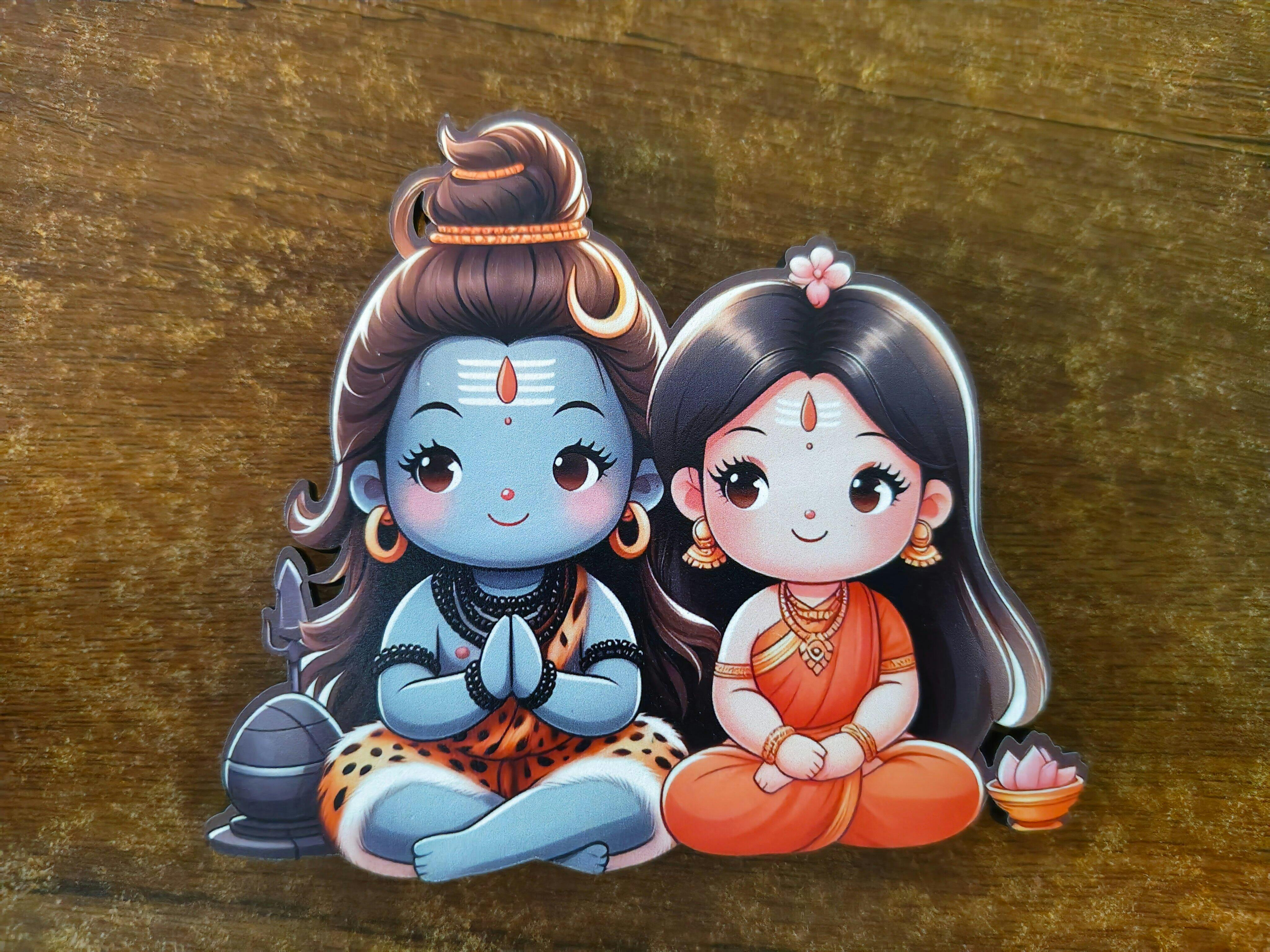 Wooden Fridge Magnet - Cute Shiv Parvati